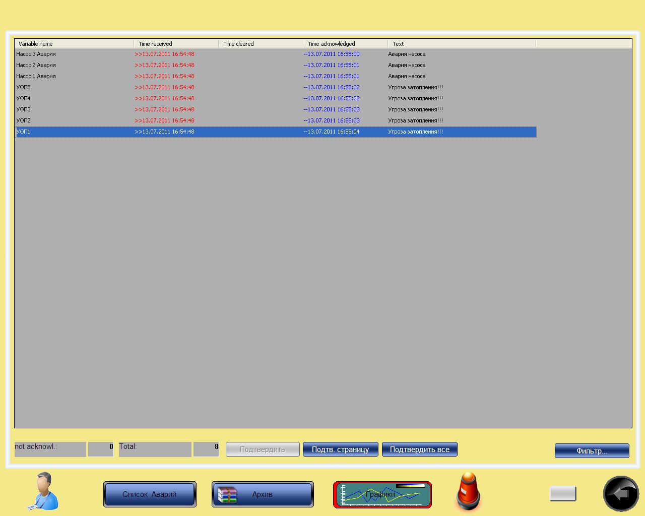 - журнал тривог та аварій;
