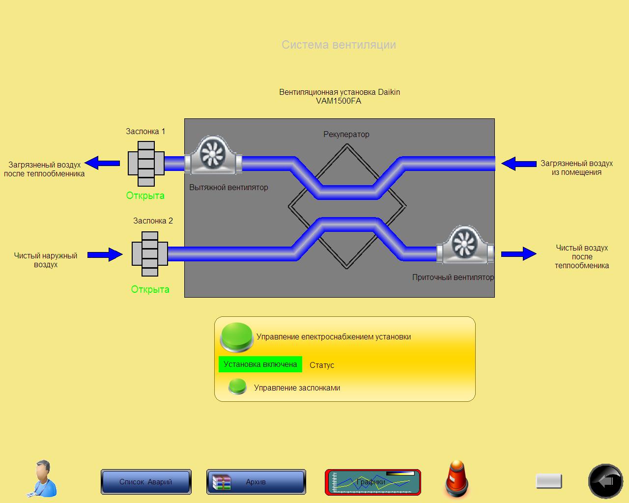 SCADA-система zenon на диспетчерський пульт оператора виводить такі вікна: